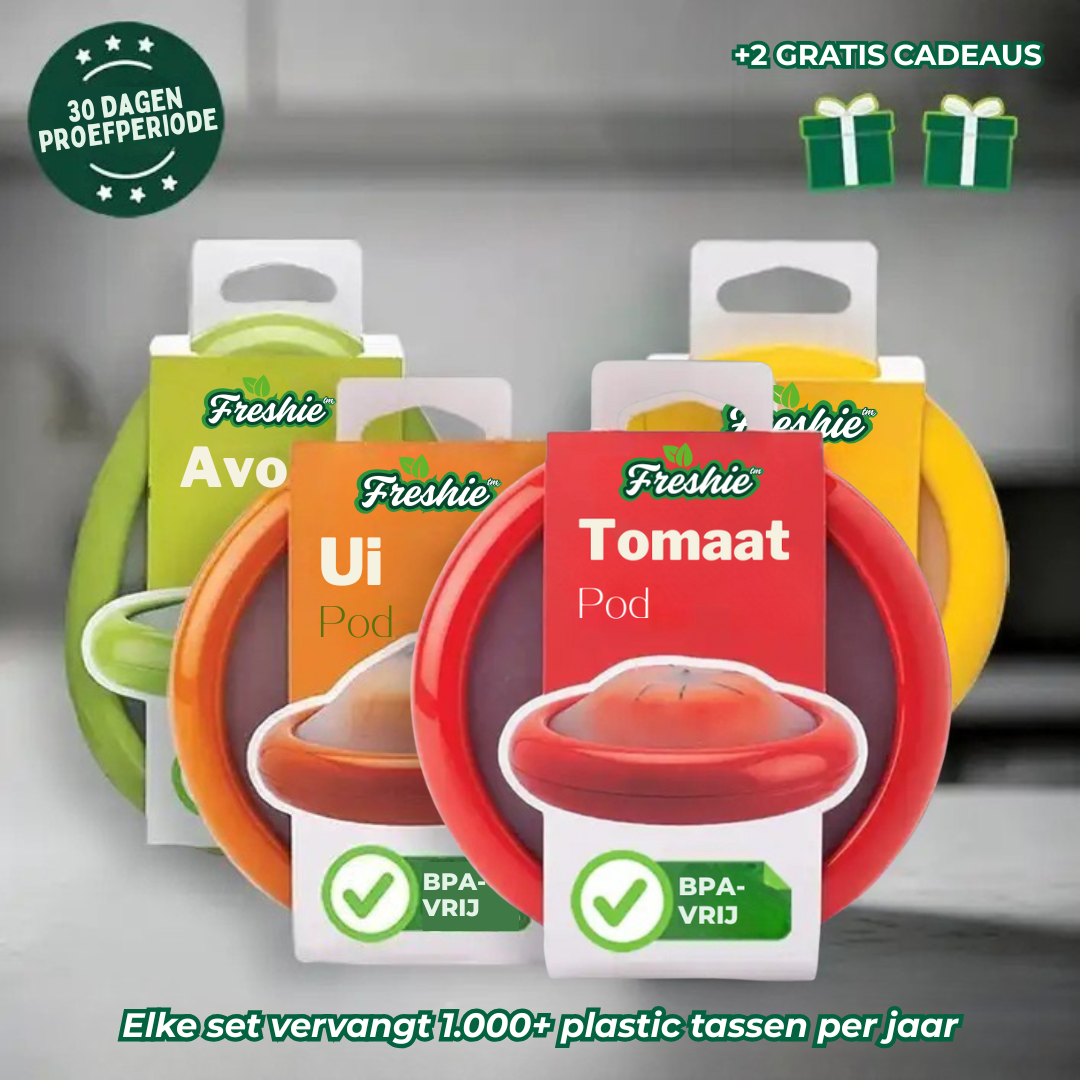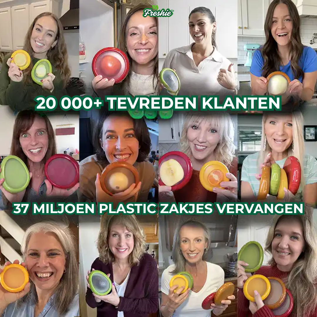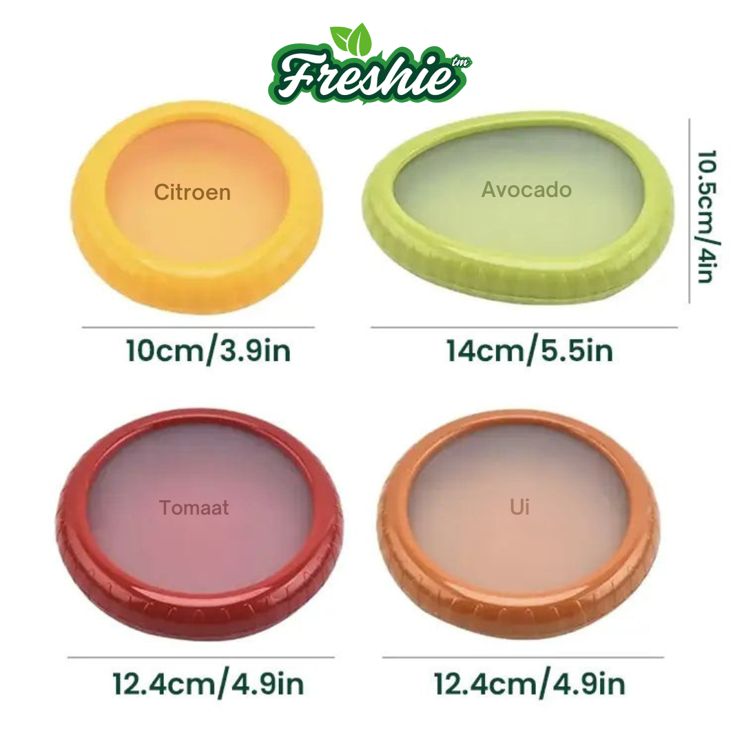 Freshie zijn slimme siliconenbeschermers die fruit en groenten langer vers houden. Ze zijn rekbaar, BPA-vrij en sluiten goed af zonder dat je wegwerpplastic nodig hebt.