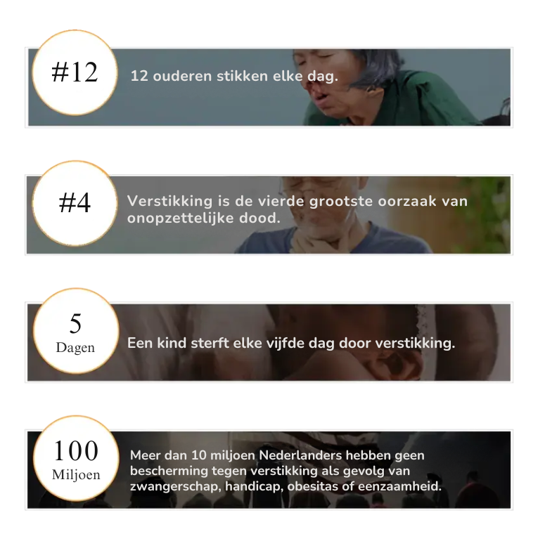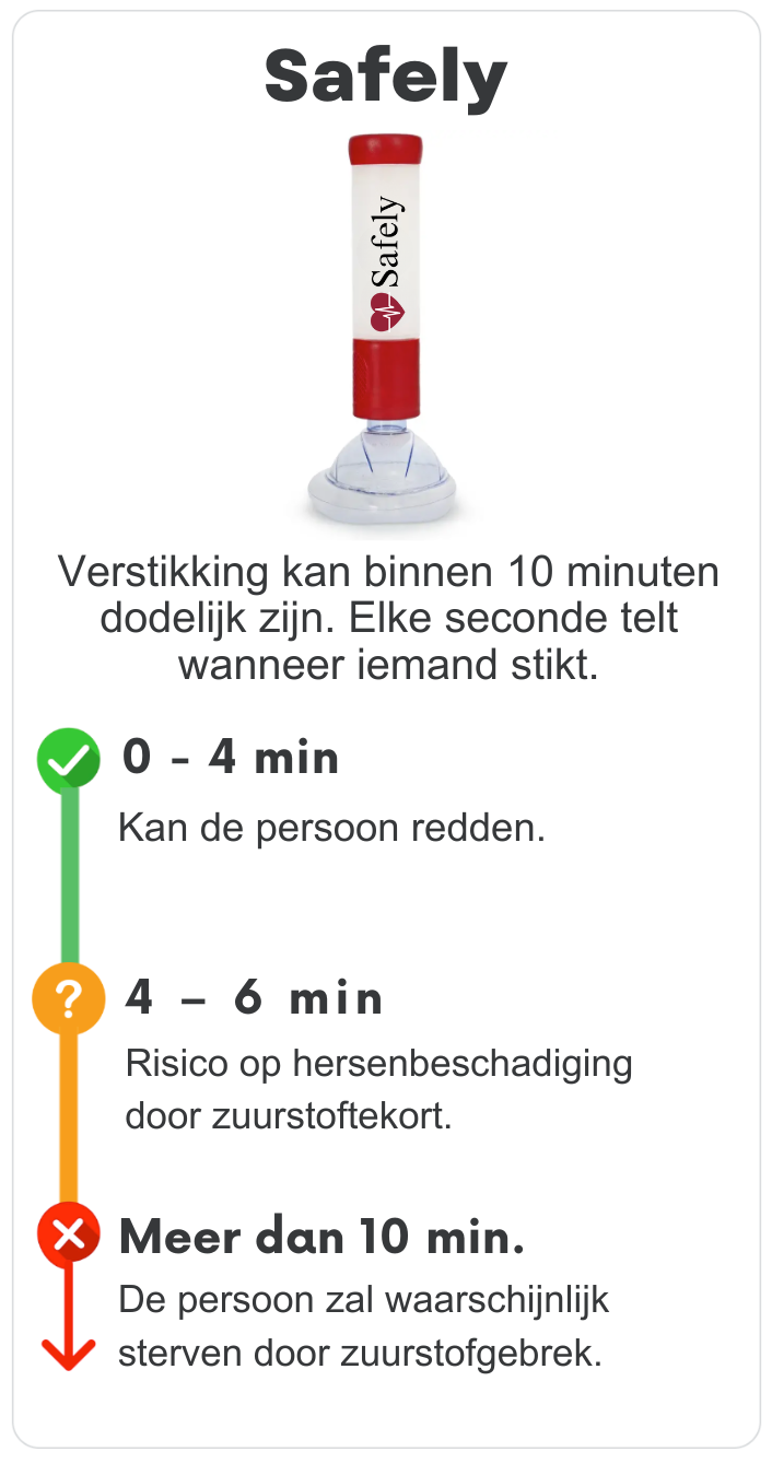 Binnen slechts 4 minuten kan verstikking hersenschade veroorzaken, wat leidt tot een leven lang verlies van zelfstandigheid, terwijl de responstijden van de ambulance 7-14 minuten kunnen duren.